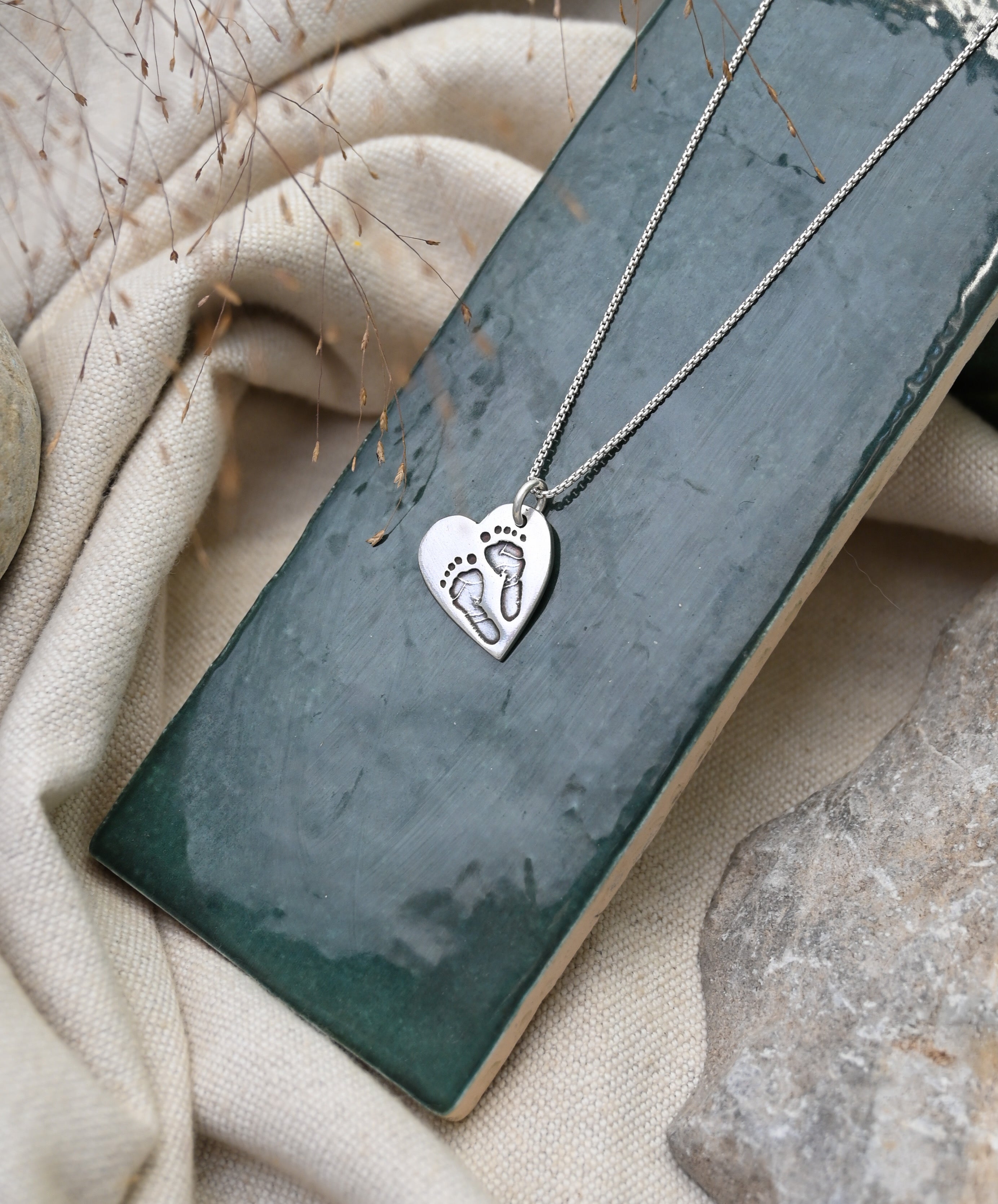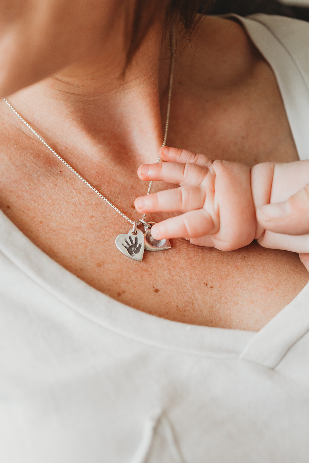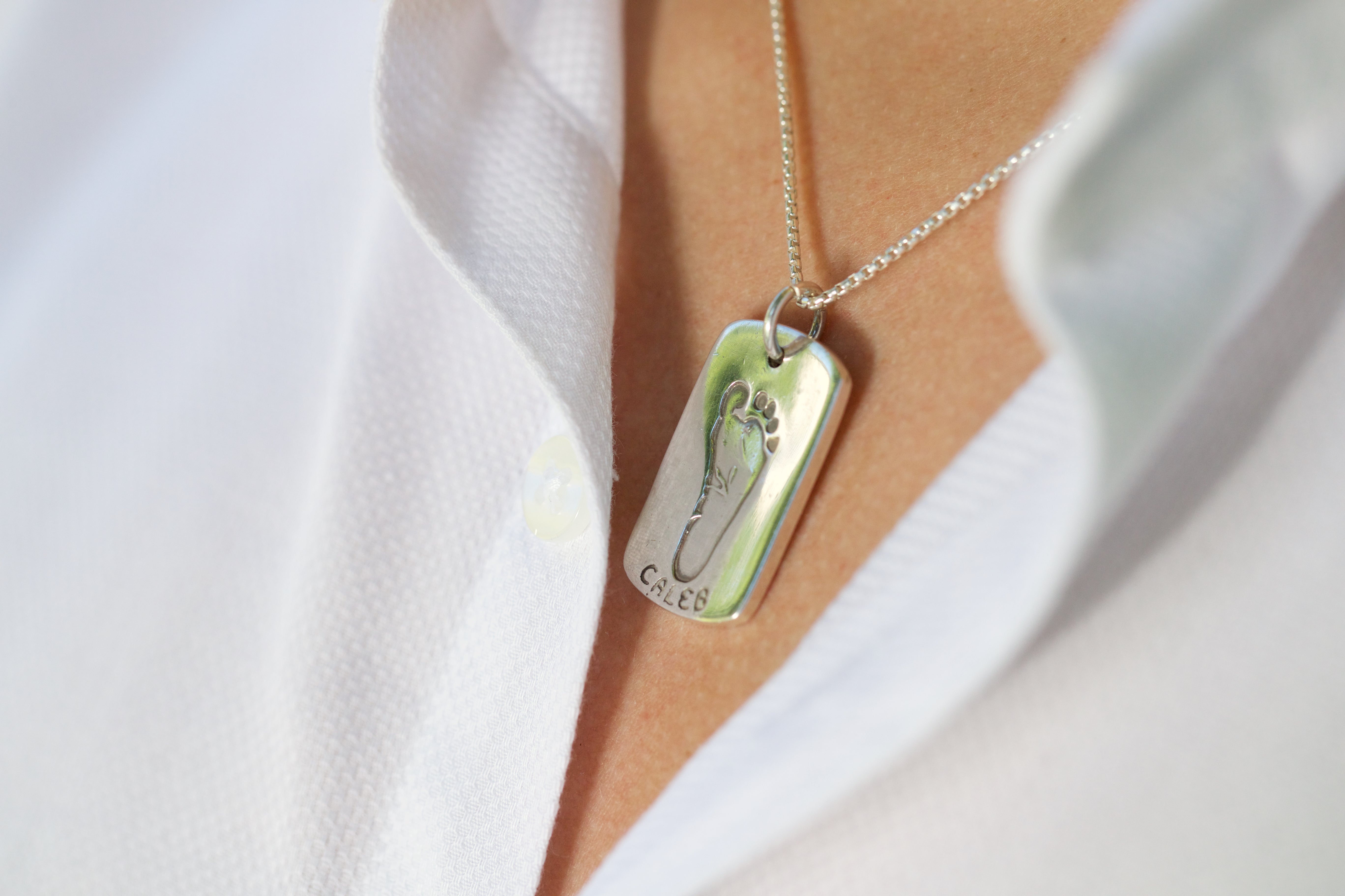 Probably our most popular necklace for showcasing those precious high fives and little kickers, this piece captures the moment from the day your baby is born. Our sterling silver pendant features a hand or footprint, along with a hand-engraved name and age, making it a stunning example of hand and footprint jewellery. Upload a clear picture of an existing print or clay cast with your order, or use one of our inkless hand & footprint kits to create an original print. Choose from a variety of pendant shapes and complete your piece with one of our Italian-made, slender sterling silver link chains, available in three sizes. You also have the option to include a birthstone for a personalised touch. Perfect!