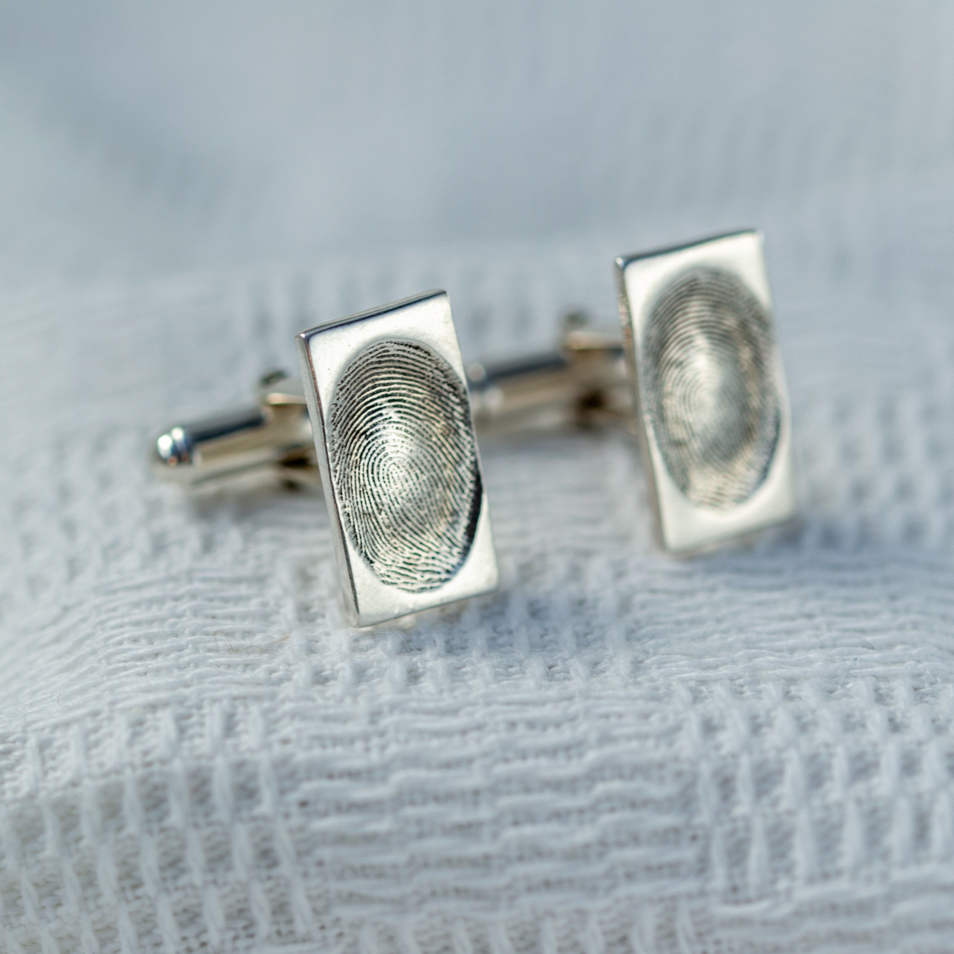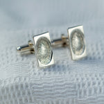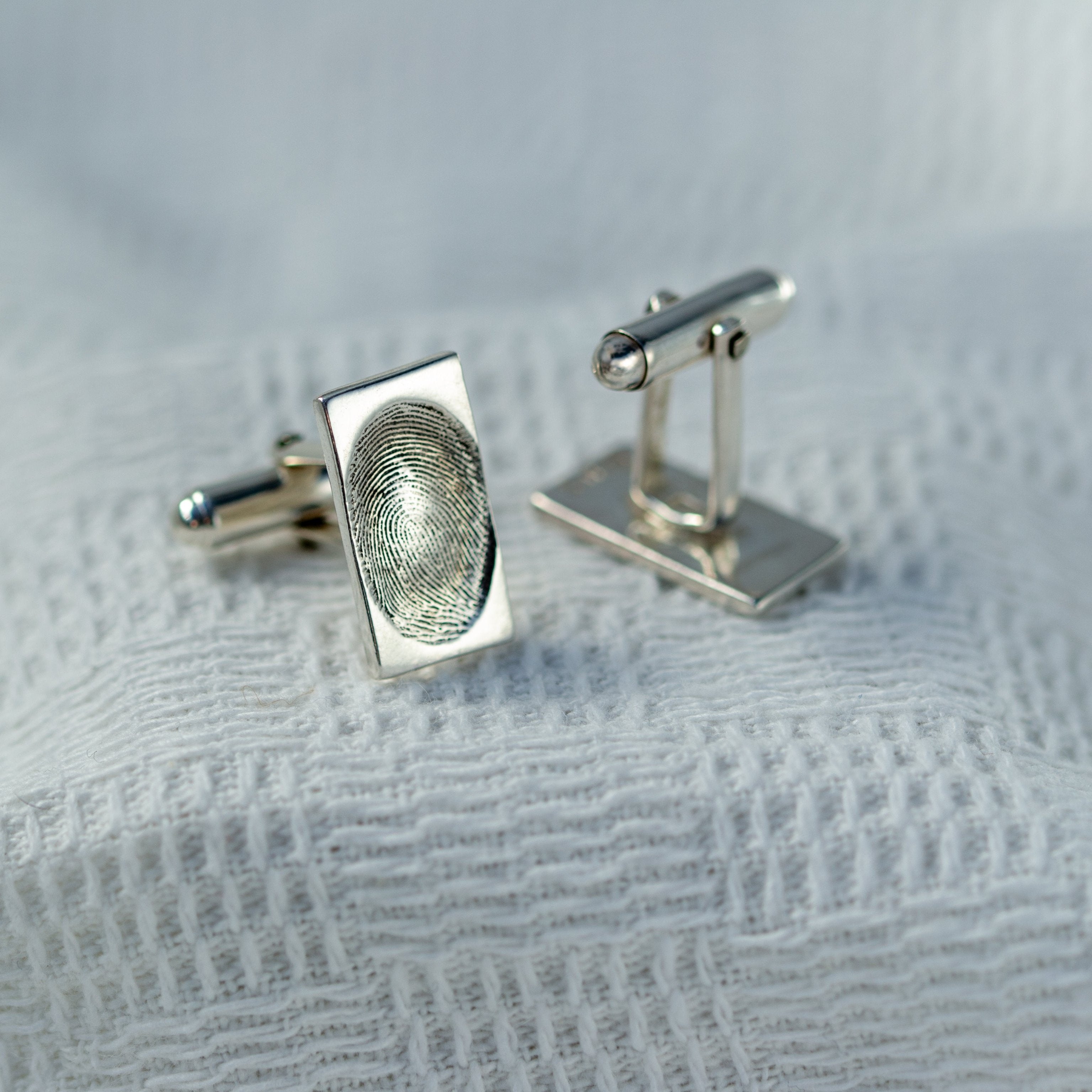 These elegant cufflinks offer a deeply personal way to preserve the memory of a loved one. Crafted in sterling silver and available in a variety of shapes, they feature the unique fingerprint of someone dear to you, serving as a timeless keepsake. Whether it’s a cherished family member or a close friend, these cufflinks make a meaningful tribute. Use our moulding compound kit to capture the fingerprint, or visit a local jeweller for assistance. A lasting and elegant way to honour someone’s memory, perfect for those seeking a heartfelt and enduring memorial.
