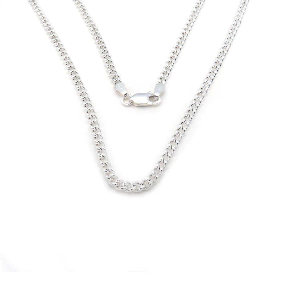 This sterling silver curb chain, available in 24" and 28" lengths, is a timeless classic, suitable for any occasion. Durable and strong, it makes the perfect accessory for any essential look.