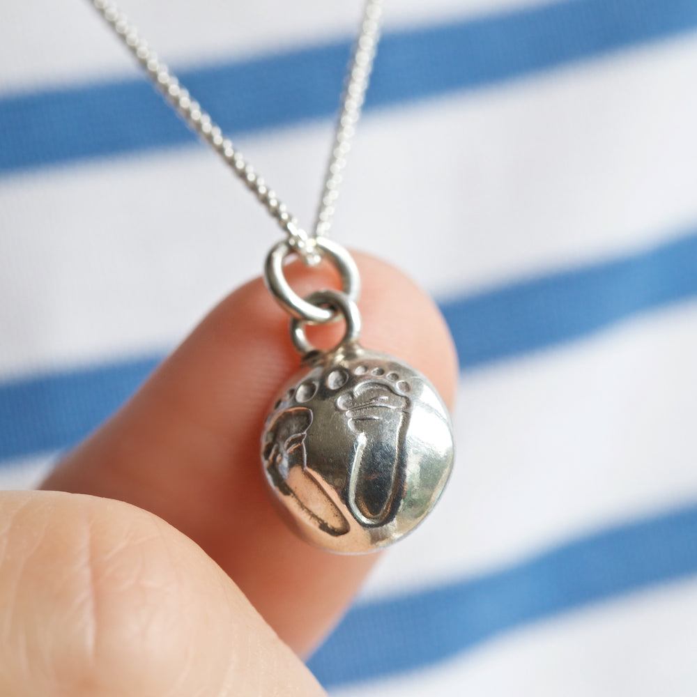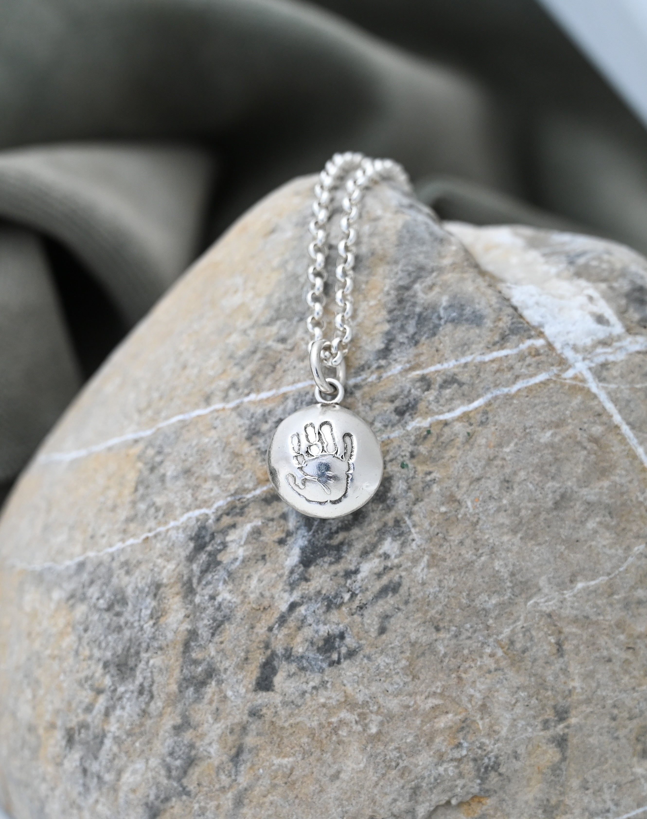 Our Smallprint Bubble pendant captures a tiny handprint or footprint on one side and a name on the other, creating a beautifully tactile piece of hand and footprint jewellery. This delightful pendant is perfect for those who love to keep cherished memories close. Simply upload a clear picture of an existing print or clay cast with your order, or use one of our inkless hand & footprint kits to obtain an original print. This unique pendant is a perfect keepsake!