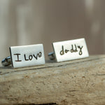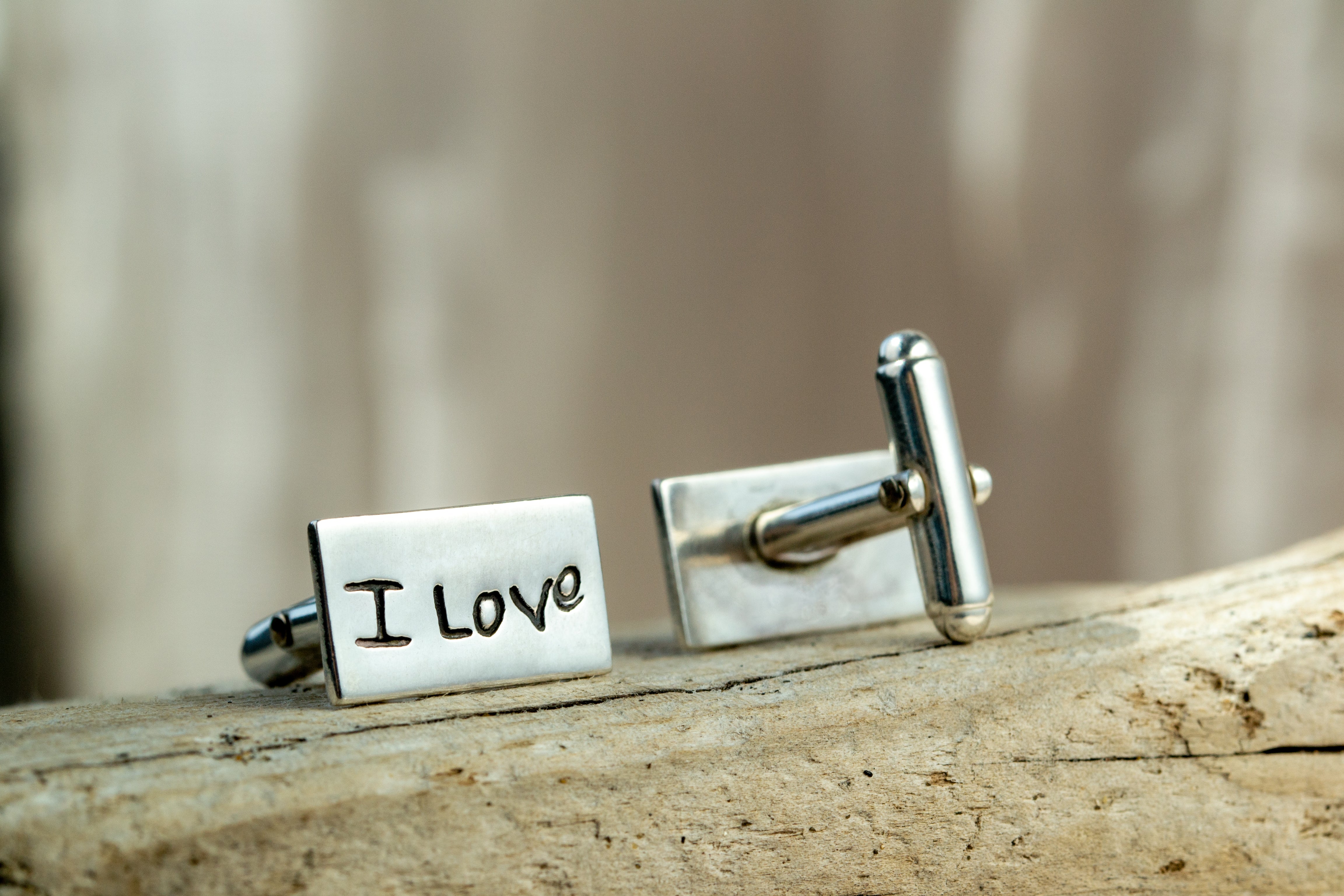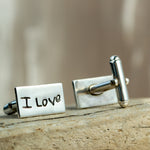 These modern sterling silver cufflink beautifully showcases handwriting jewellery, with a handwritten name or word on the front and a name engraved on the back. Whether you’re looking for a unique gift for Father’s Day, Christmas, a birthday, or any special occasion, these luxurious cufflinks make the perfect gift for him. Simply take a photo of your handwriting and upload it during the ordering process. You can’t go wrong with our discreet and elegant original handwriting cufflinks.