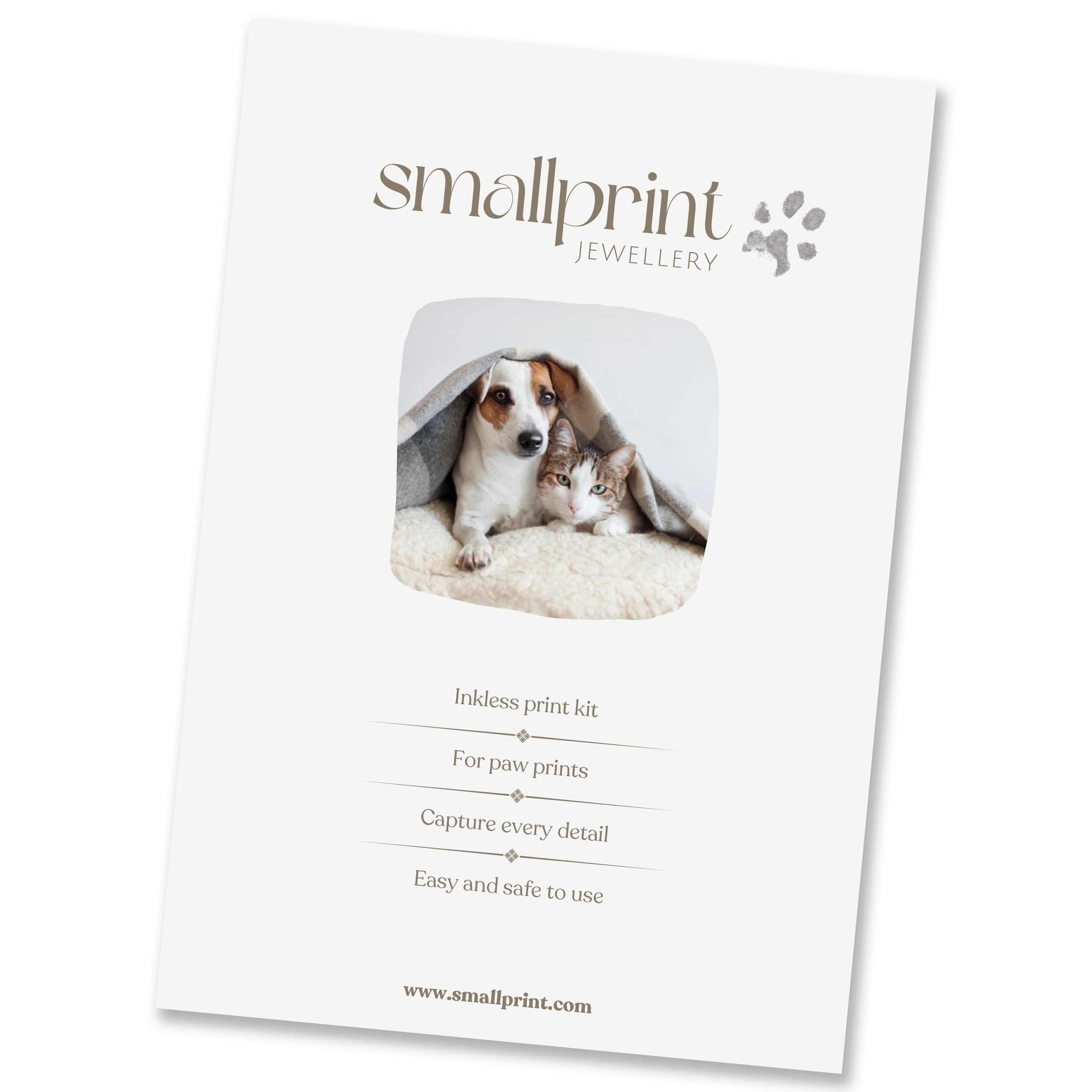 Capture a moment in time; make a unique gift; and have fun...all at the same time! With the "Inkless Print Kit", you can capture every crease and wrinkle of a pet's paw print. The kit enables you to create an impression of your pet's paw print, by pressing it down onto special, sensitised paper. These can then be framed and displayed as a beautiful keepsake. Each paw print kit contains enough to take up to 4 paw prints. It's easy-to-use and safe. The system is entirely inkless...there is no residue and no mess.